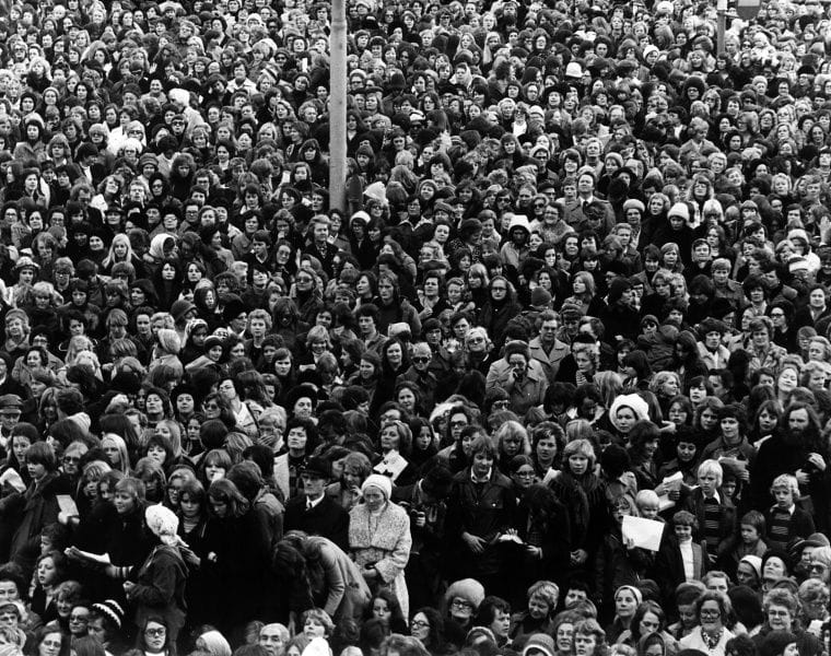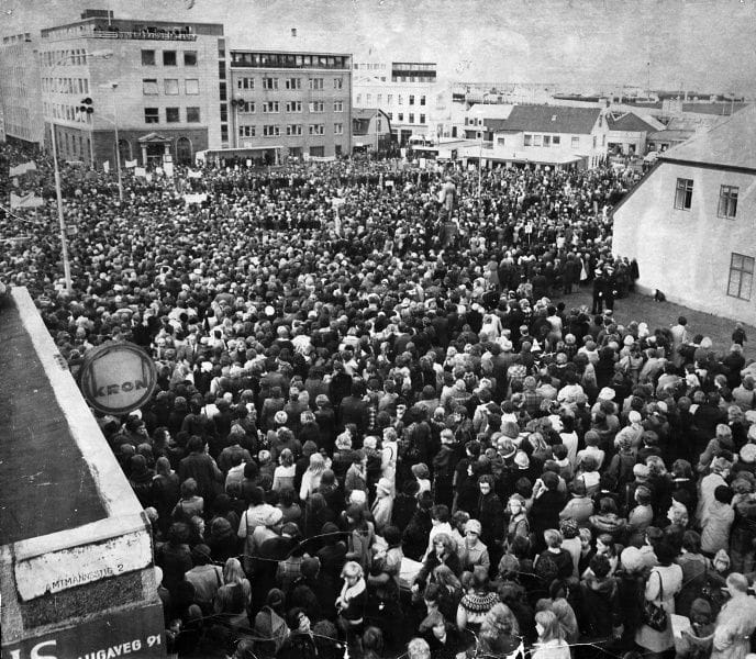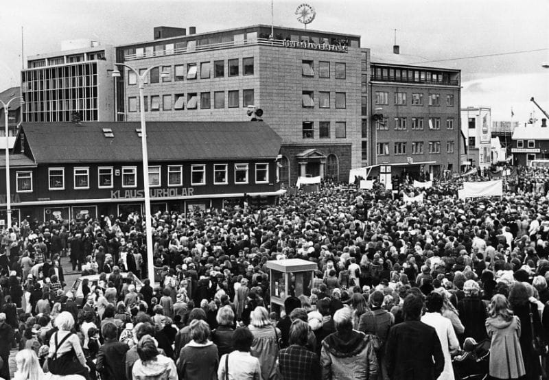 "약 25,000명의 여성들이 레이캬비크 광장에 모였다. 아이슬란드 전역에서 여성 인구의 90%가 모였다." - WOMEN'S HISTORY ARCHIVES