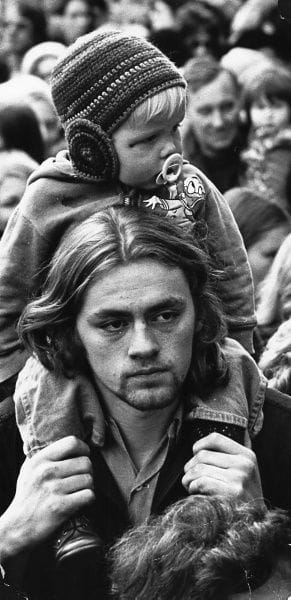 당시 시위의 모습이라고 한다. 여성들은 시위에 참여했고, 사진에서 보다시피 아빠가 아이를 돌봤다. Copyright: WOMEN'S HISTORY ARCHIVES